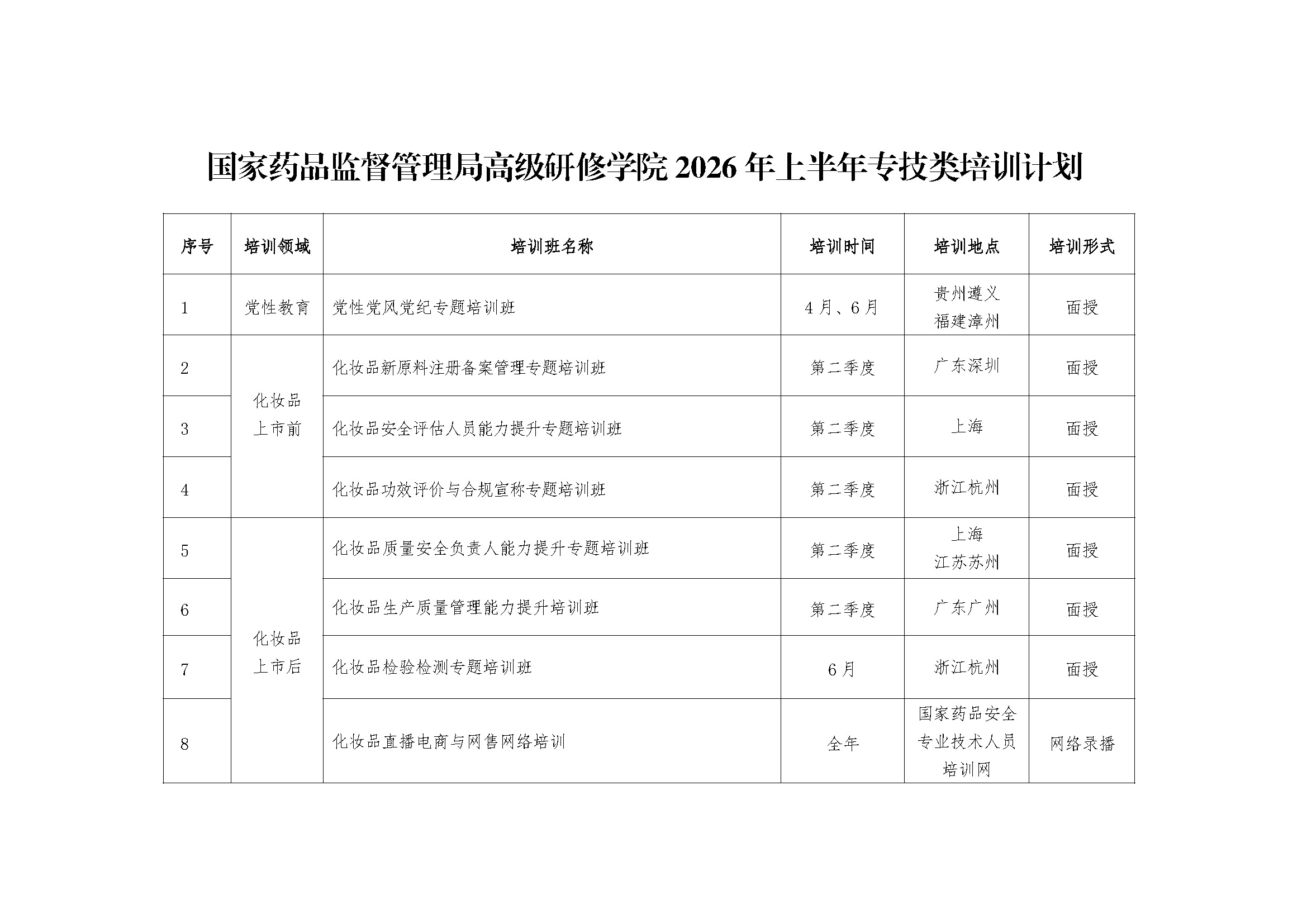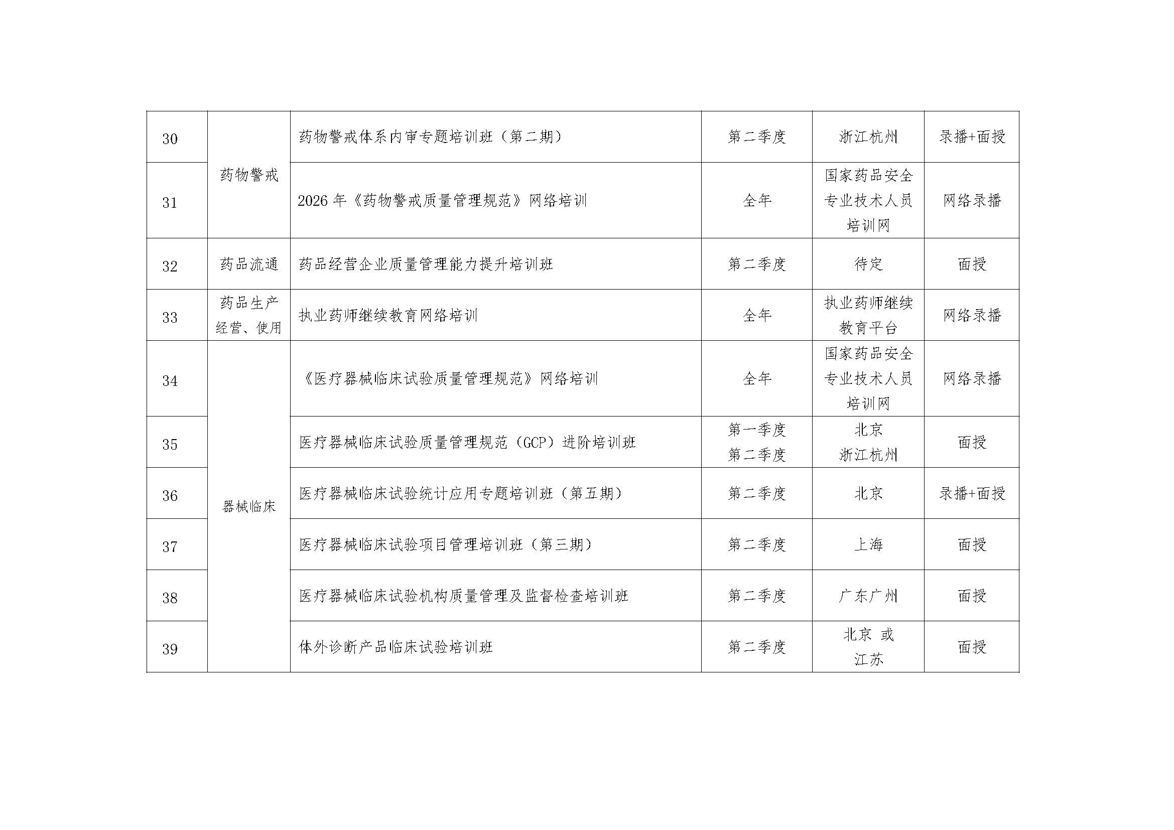 国家药品监督管理局高级研修学院2026年上半年专技类培训计划