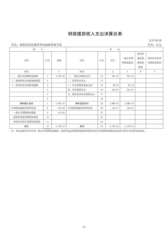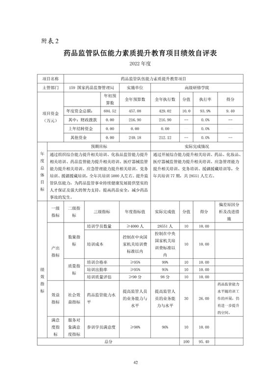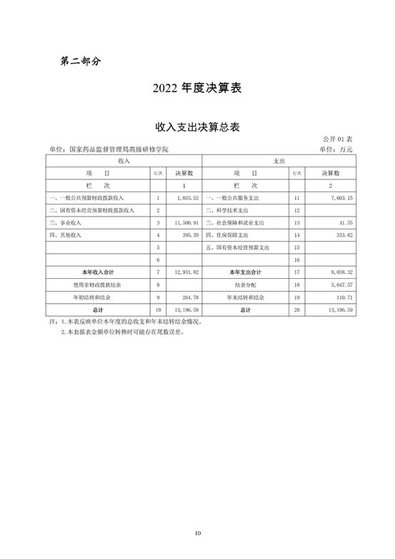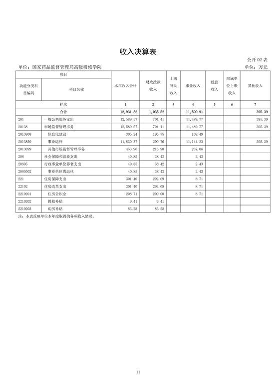国家药品监督管理局高级研修学院2022年度决算