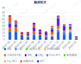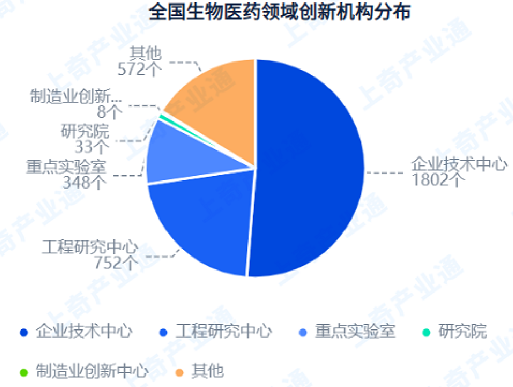 根据上奇产业通,生物医药产业由原材料、药品制造、医学研发服务、药品流通服务4个一级环节构成,包含13个二级环节、43个三级环节和23个四级环节。 截止到2023年3月,全国布局企业10139家,主要分布在广东省、浙江省和江苏省,分别有806家、805家和785家。 全量企业中,上市企业279家,专精特新企业1706家,高新技术企业3511家,分别占全量企业的2.8%、16.8%、34.6%。 从上市企业数量来看,广东省、浙江省、上海市、江苏省生物医药产业上市企业数量位居前三,分别有36家、33家、31家、31家。从专精特新企业数量来看,广东省、山东省、江西省生物医药产业专精特新企业数量位居前三,分别有159家、128家、114家。从高新技术企业数量来看,江苏省、广东省、浙江省生物医药产业高新技术企业数量位居前三,分别有368家、359家、301家。 截止到2023年3月,全国生物医药产业授权专利总量共5491件,其中授权发明专利1501件,占比27.34%,授权实用新型专利3962件,占比72.15%,授权外观设计专利28件,占比0.51%。 全国省级及以上生物医药研发机构3515个,其中企业技术中心数量最多,共1802个,其次为工程研究中心,有752个。 2022年4月到2023年3月,生物医药产业发生融资事件526起,融资金额高达961亿元,融资轮次集中在A轮。