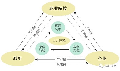 面向中国式现代化发展,学校、政府与企业协同育人成为现代职业教育体系的本质特征。对此,职业院校人才培养模式的“外螺旋”构建,不仅关注企业与院校之间的合作关系,而且也注重政府在其中发挥的关键作用。